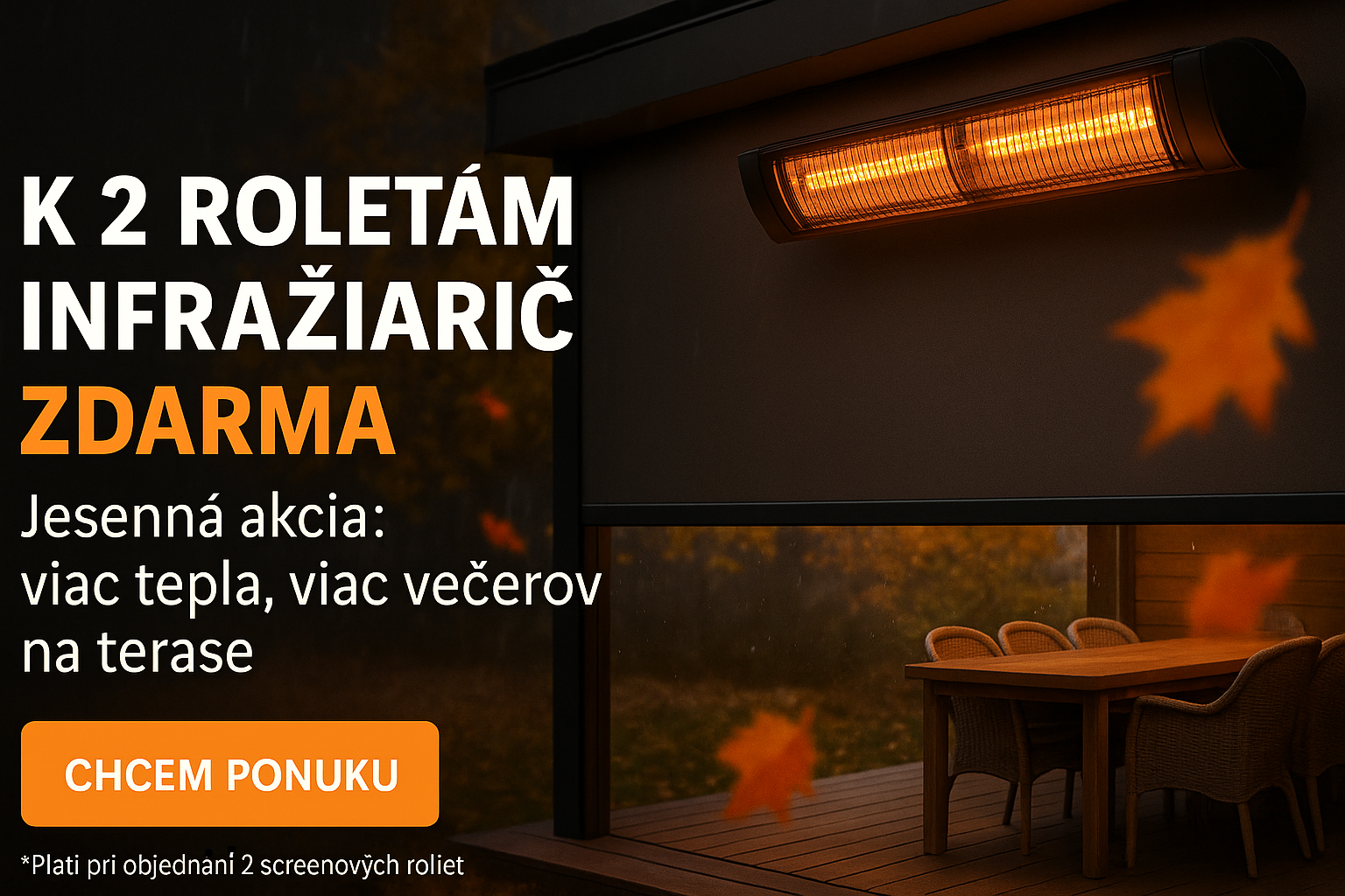 Jeseň/Zima: predĺžia terasovú sezónu o týždne až mesiace – menej prievanu, viac tepla a kľudu.